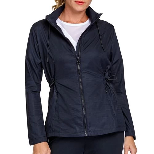Complete your tennis outfit with this great looking and comfortable jacket from Tail. The Tail Nola jacket has a full front zipper, attached hood, drawcords at the neck and waist, front zipper pockets and is water resistant.